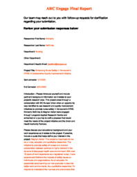 Summary Content type Content type Digital Document Collection(s) Collection(s) ARC Fund Final Reports Resource Type Resource Type Text Genre Genre reporting Origin Information Origin Information Date Created/Date Issued 2025 Persons and Affiliations Persons Author (aut): McKinley, Kimberly Abstract/Description Description / Synopsis Description / Synopsis This project proposes to explore issues and find solutions to complex safety while working in Vancouver's Downtown Eastside. The aim is to also determine and test some solutions to solve the issues and ensure nurse safety is supported.
